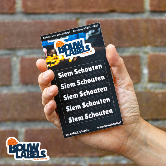 Wij hebben gemerkt dat jullie vooral je elektrisch gereedschap wil voorzien van je naam. En dat snappen we best. Daarvoor gebruik je natuurlijk het beste onze grote labels