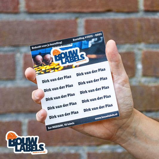 In een gedeelde werkplaats of op een bouwplaats lijken veel tools op elkaar. Met een duidelijk naamlabel weet je altijd wat van jou is. Geen discussies meer met collega’s. Iedereen weet wat bij wie hoort.